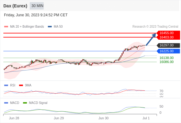 如跌破 16225 ,德国DAX指数期货 (Eurex) 目标方向定在 16138 和 16086 。
