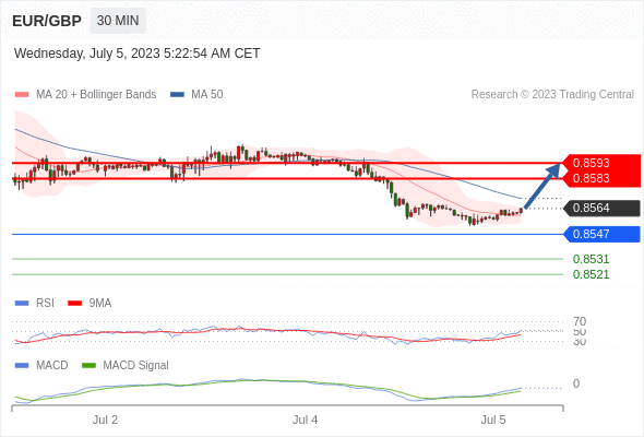 欧元/英镑 当日内: 看涨。