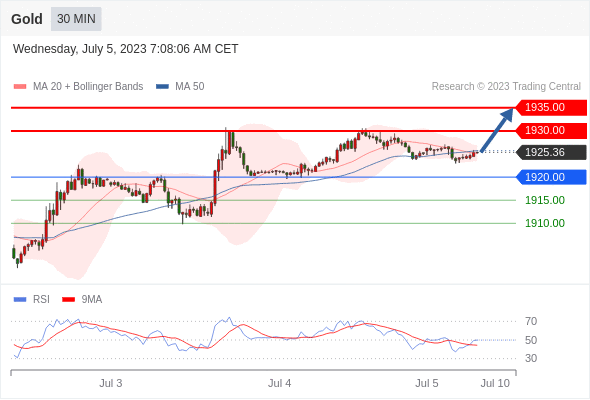 在 1920.00 之上,看涨,目标价位为 1930.00 ,然后为 1935.00 。