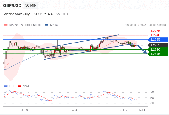 在 1.2725 之下,看跌,目标价位为 1.2690 ,然后为 1.2675 。