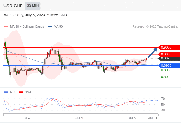 在 0.8960 之上,看涨,目标价位为 0.8985 ,然后为 0.9000 。