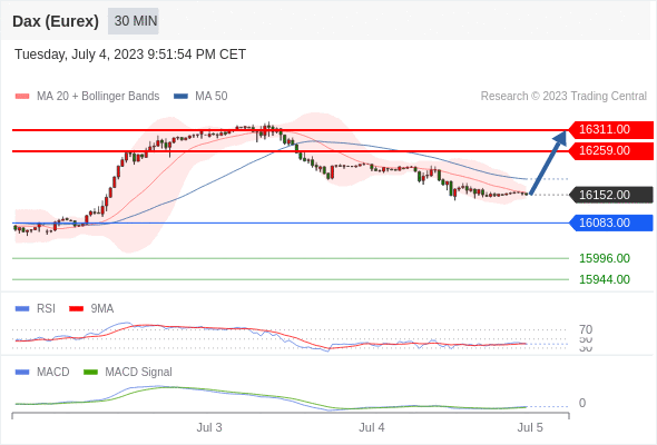 如跌破 16083 ,德国DAX指数期货 (Eurex) 目标方向定在 15996 和 15944 。