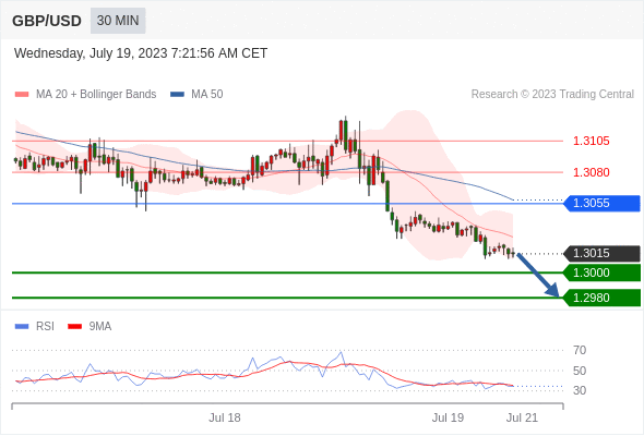 在 1.3055 之下,看跌,目标价位为 1.3000 ,然后为 1.2980 。