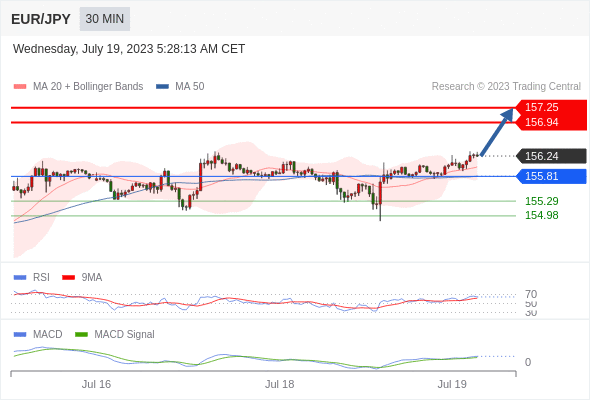 欧元/日元 当日内: 看涨,当 155.81 为支撑位。