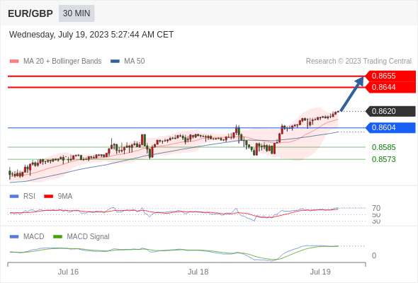 欧元/英镑 当日内: 看涨,当 0.8604 为支撑位。