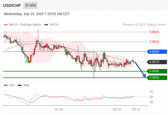 在 0.8595 之下,看跌,目标价位为 0.8565 ,然后为 0.8555 。