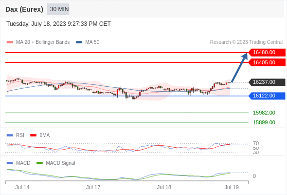 德国DAX指数期货 (Eurex)? 当日内: 看涨,当 16122.00 为支撑位。
