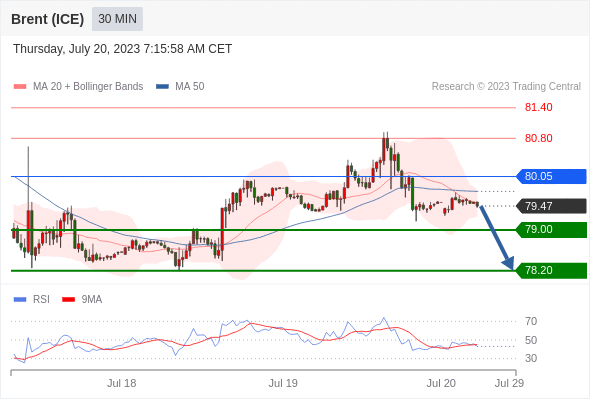 在 80.05 之下,看跌,目标价位为 79.00 ,然后为 78.20 。