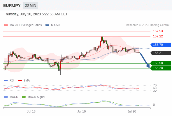 欧元/日元 当日内: 看跌,在 156.70 之下。
