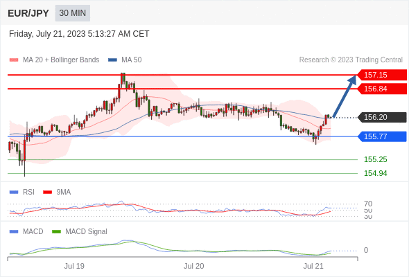 欧元/日元 当日内: 看涨,当 155.77 未被跌破。