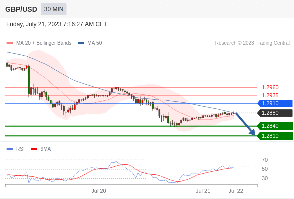 在 1.2910 之下,看跌,目标价位为 1.2840 ,然后为 1.2810 。