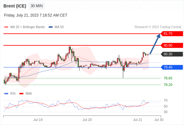 在 79.40 之上,看涨,目标价位为 80.90 ,然后为 81.70 。