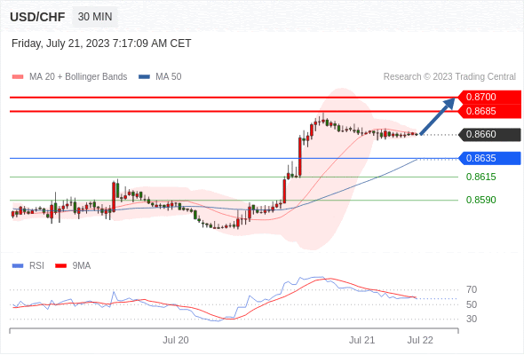 在 0.8635 之上,看涨,目标价位为 0.8685 ,然后为 0.8700 。