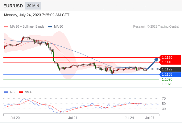 在 1.1105 之上,看涨,目标价位为 1.1145 ,然后为 1.1160 。