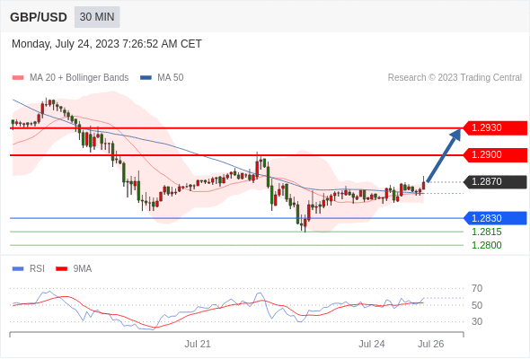 在 1.2830 之上,看涨,目标价位为 1.2900 ,然后为 1.2930 。