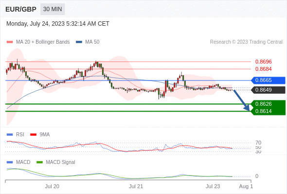 欧元/英镑 当日内: 看跌,在 0.8665 之下。