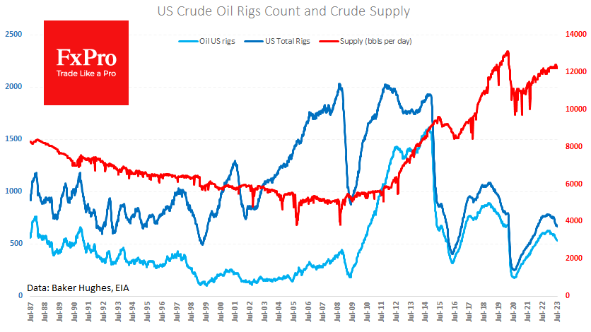 有趣的是,持续数周的油价上涨并未改变美国石油生产商的情绪。上周石油库存维持在每日1220万桶,略低于年初以来的平均水平,表明近期市场情绪相对谨慎。本周活跃钻井数量降至528(-2),为去年3月以来的最低水平。