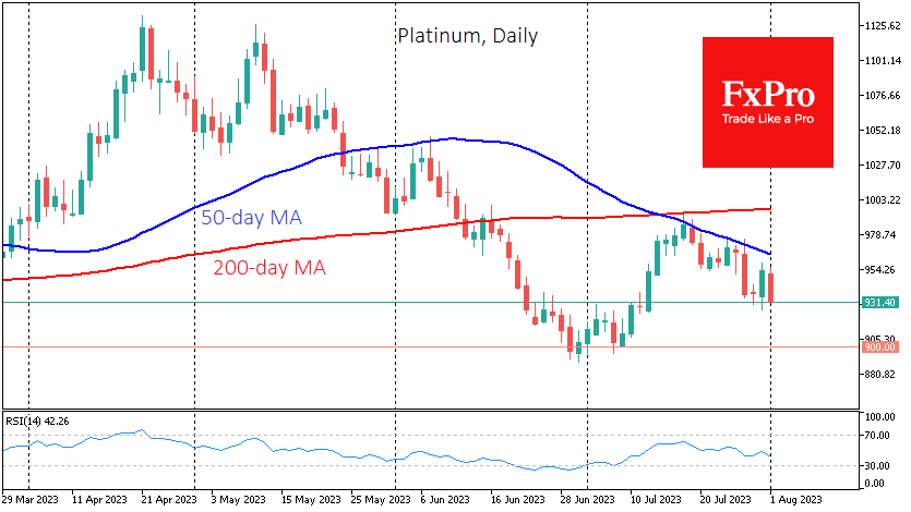 其他贵金属在当地也不受欢迎。铂金周二下跌逾2%,自上月中旬以来,50天移动平均线一直是阻力,此前不久形成了”死亡十字架”信号。