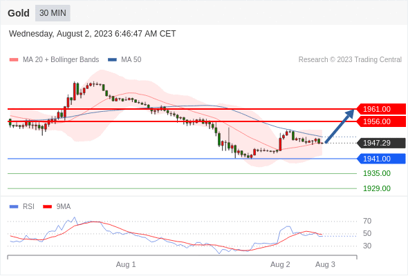 在 1941.00 之上,看涨,目标价位为 1956.00 ,然后为 1961.00 。