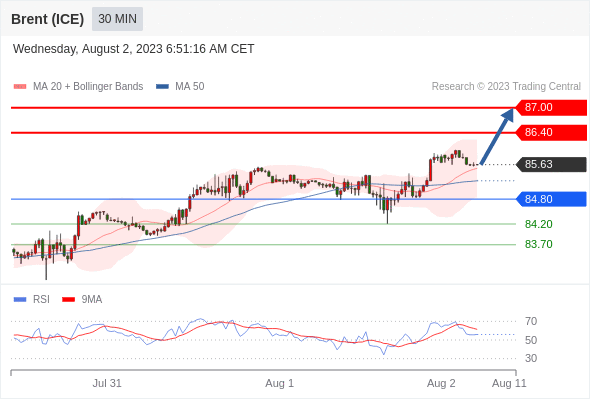 在 84.80 之上,看涨,目标价位为 86.40 ,然后为 87.00 。