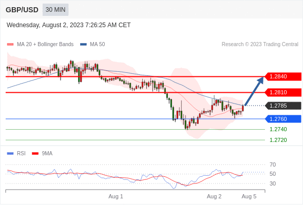 在 1.2760 之上,看涨,目标价位为 1.2810 ,然后为 1.2840 。