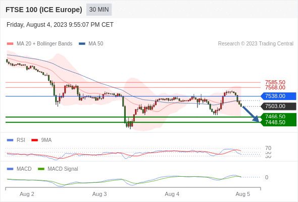 英国富时100指数期货 当日内: 看跌,当 7538.00 为阻力位。