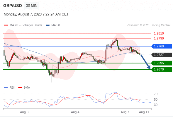 在 1.2760 之下,看跌,目标价位为 1.2695 ,然后为 1.2670 。