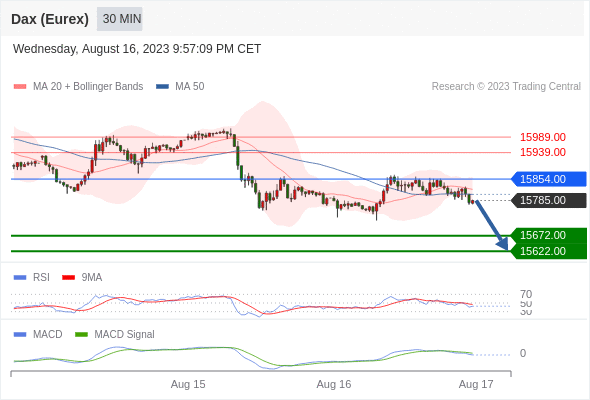 德国DAX指数期货 (Eurex)? 当日内: 看跌,在 15854.00 之下。