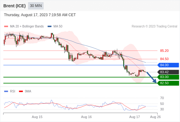 在 84.00 之下,看跌,目标价位为 83.00 ,然后为 82.50 。