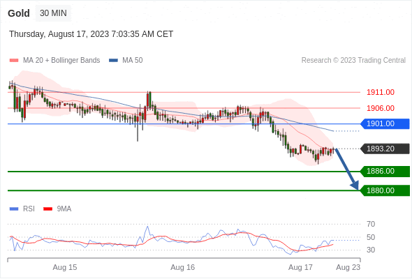 在 1901.00 之下,看跌,目标价位为 1886.00 ,然后为 1880.00 。
