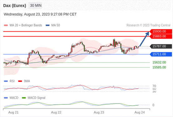 看涨,当 15711.00 为支撑位。