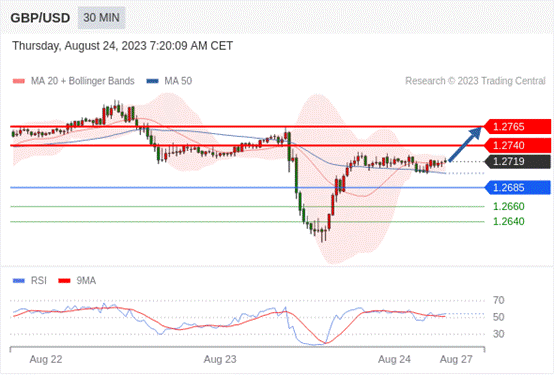 在 1.2685 之上,看涨,目标价位为 1.2740 ,然后为 1.2765 。