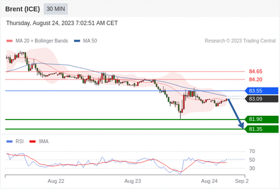 在 83.55 之下,看跌,目标价位为 81.90 ,然后为 81.35 。