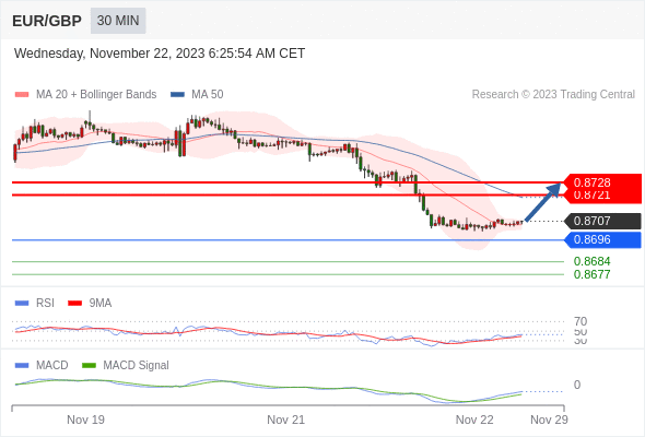 如跌破 0.8696 ,EUR/GBP 目标方向定在 0.8684 和 0.8677 。
