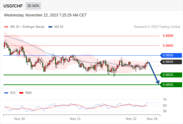 在 0.8850 之下,看跌,目标价位为 0.8820 ,然后为 0.8805 。
