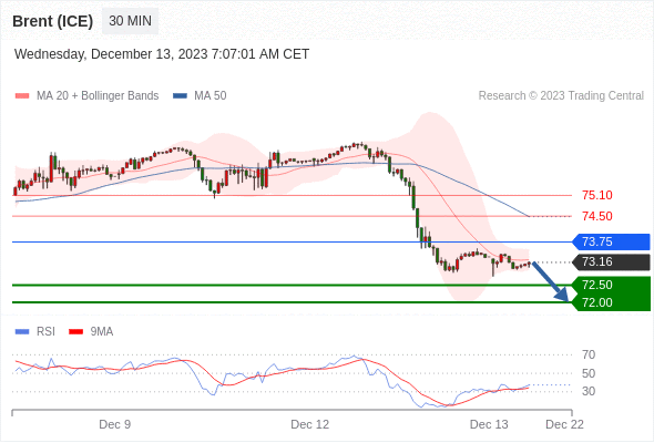 在 73.75 之下,看跌,目标价位为 72.50 ,然后为 72.00 。