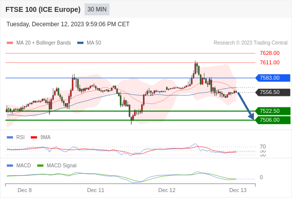 英国富时100指数期货 当日内: 看跌,在 7583.00 之下。