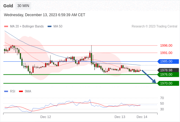 在 1985.00 之下,看跌,目标价位为 1976.00 ,然后为 1970.00 。