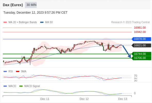 德国DAX指数期货 (Eurex)? 当日内: 在进一步下跌之前,反弹至 16878.00 附近。