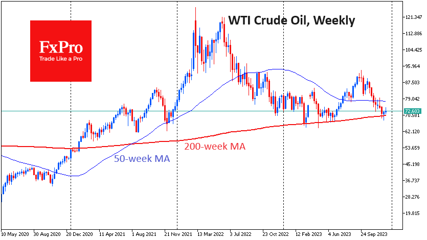 FxPro高级分析师Alex Kuptsikevich指出:有趣的是,技术因素也在石油方面发挥作用。从每周来看,油价在上周跌破200周移动平均线后引起了买家的兴趣。这是油价今年第九次跌破或触及这条曲线,但本周收高。