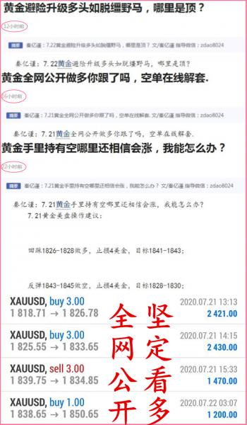 秦亿谨:7.22黄金多头已是众人皆知,低位空单解套.