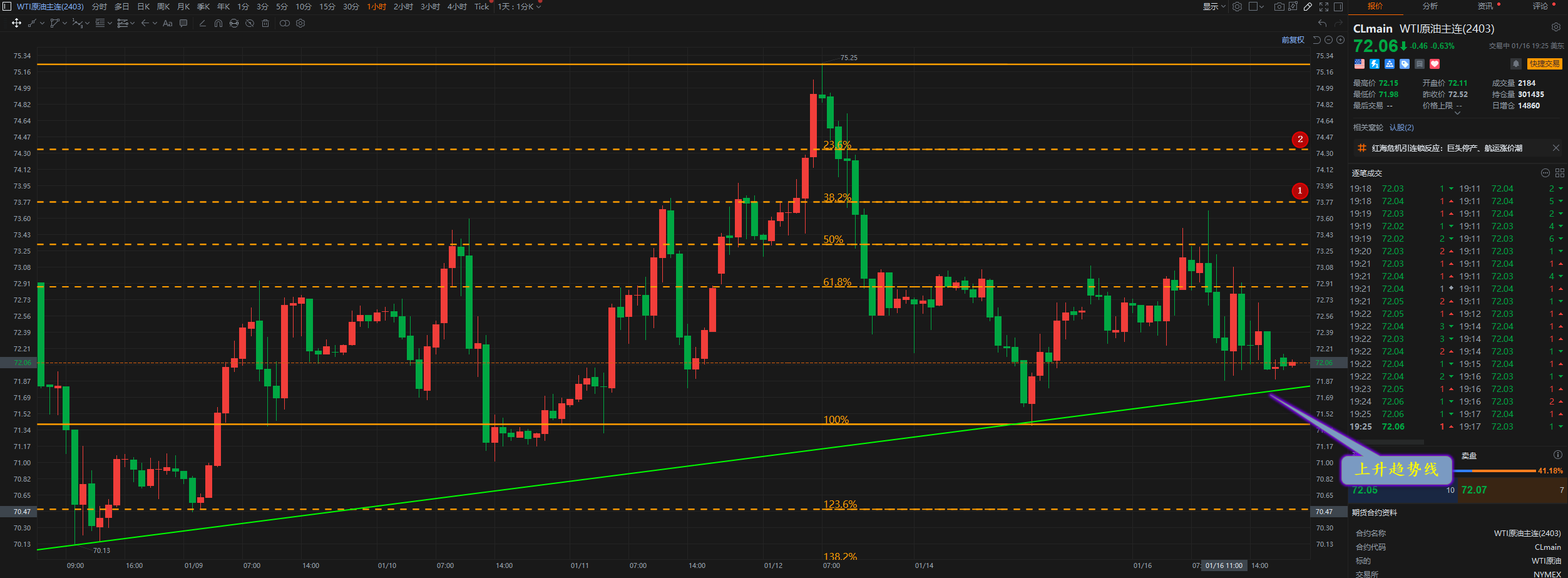 原油71.80和70.40分别做多,止损各70点,止盈各200点;