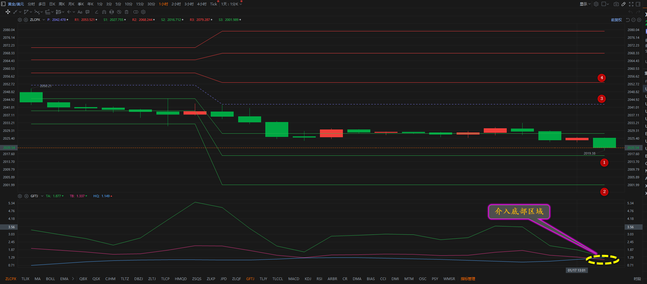 通过对黄金小时图解析得知,黄金从早盘先涨后跌整体延续下跌走势,目前即将到达下方1号支撑位,我们从下方的附图可以清楚的看到,目前已经介入底部区域相对而言得要在下方出现止跌反弹动作,但是不排除进一步下探到下方2号支撑位2000一线,短期上方我们继续重点关注34号的压力,在操作上我们继续高空低多思路,具体建议如下: