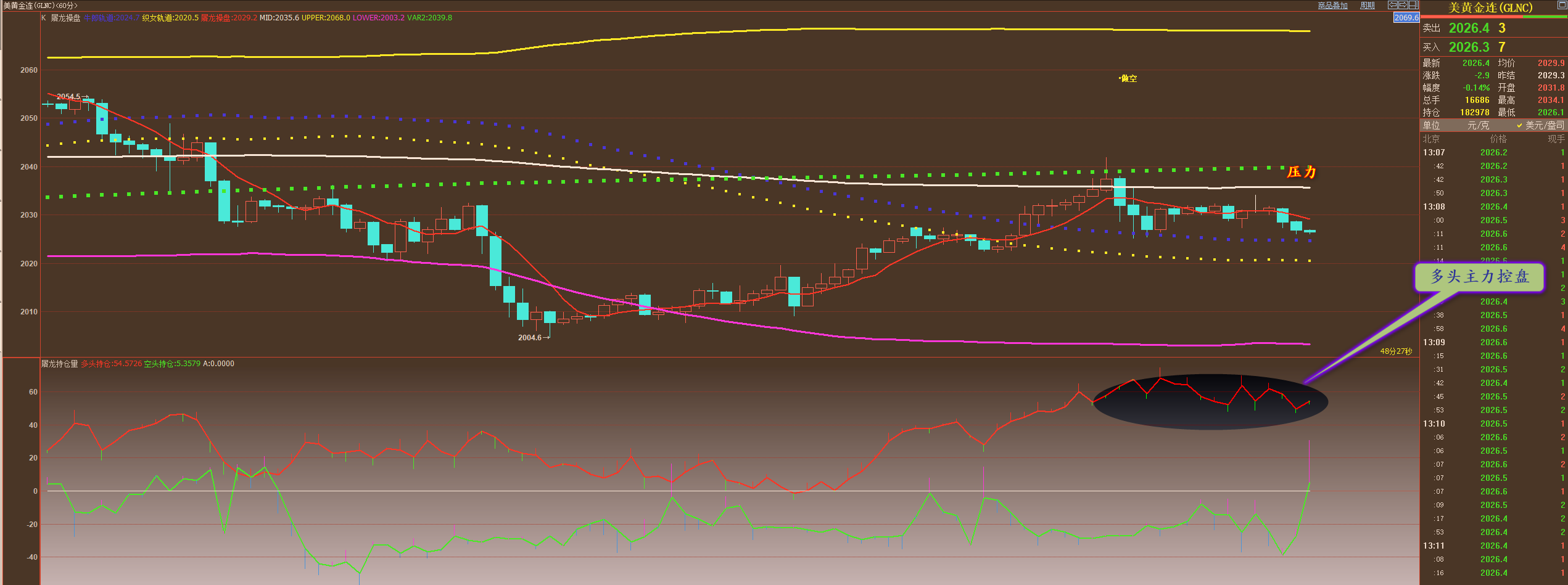 通过对黄金小时图解析得知,黄金从早盘在2032一线冲高回落,目前再次回到2022一线相对而言也是有一定的支撑作用,我们从下方的附图可以清楚的看到虽然冲高回落中,但是多头主力依然是处于控盘的状态,下方我们重点关注双轨的支撑以及下方2004一线的支撑,短期早盘就已经说过要回调确认下方支撑的有效性,在操作上我们继续高空低多思路,具体建议参考早盘策略