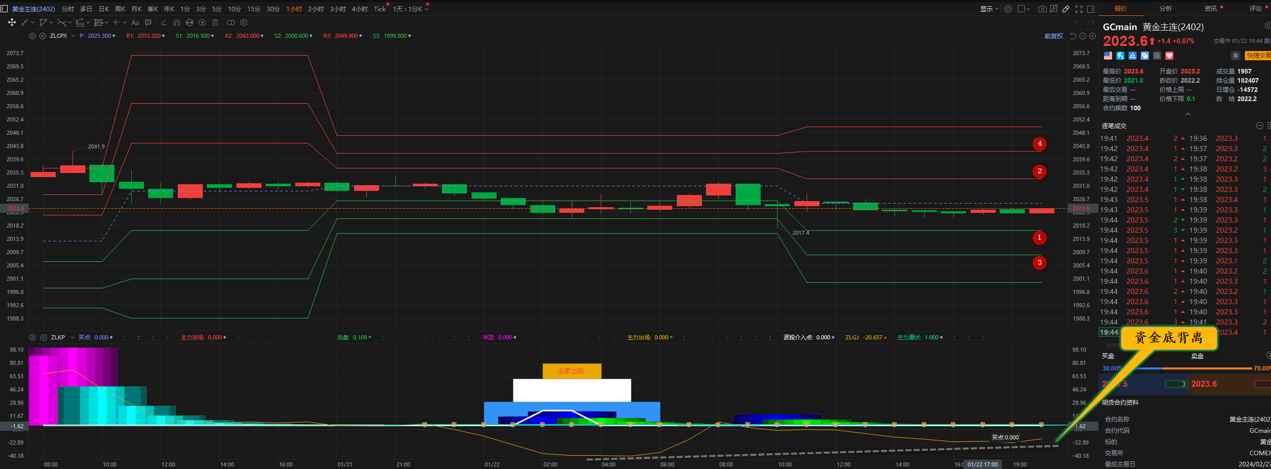 通过对黄金小时图解析得知,昨日黄金先涨后跌在盘中形成窄幅震荡调整走势,我们从下方附图可以清楚的看到在下方2019一线出现了资金底背离迹象,再次说明行情在下跌的过程中,有部分资金进仓动作,说明行情即将要继续震荡上行,短期上方我们重点关注24号的压力,下方我们重点关注13号的支撑,在操作上我们继续高空低多思路,具体建议如下: