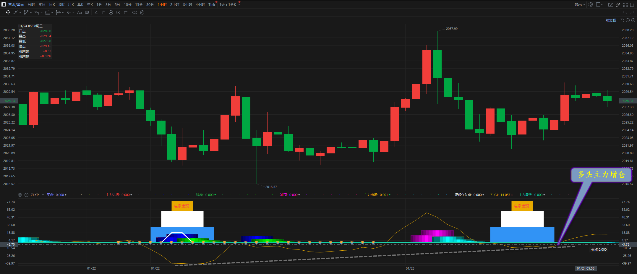 通过对黄金小时图解析得知,昨日行情如期继续窄幅震荡调整运行,早盘再次到达上方2038一线冲高回落,晚间再次回到下方2021一线止跌反弹继续向上,之所以会出现止跌反弹动作,我们从下方的附图可以清楚的看到多头主力持续增仓介入并且增仓幅度越来越大,短期上方随时都会出现放量突破动作,短期在操作上我们继续高空低多思路,重点逢低做多,具体建议如下: