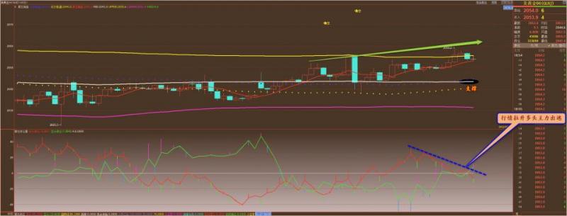 通过对黄金小时图解析得知,今日行情这次向上突破创新高有攻击的迹象,同时也是在上方的小时级别610日均线的压力位受阻回落,但是我们从下方的附图可以清楚的看到行情在拉升创新高的时候多头主力有出逃获利了结的动作,说明行情还要继续震荡调整运行,短期下方我们做嗲你关注下方布林带中轨的支撑以及双轨的支撑(2022一线),短期在操作上我们滋味高空低多思路,下来了我们还是重点逢低做多,具体建议参考早盘策略