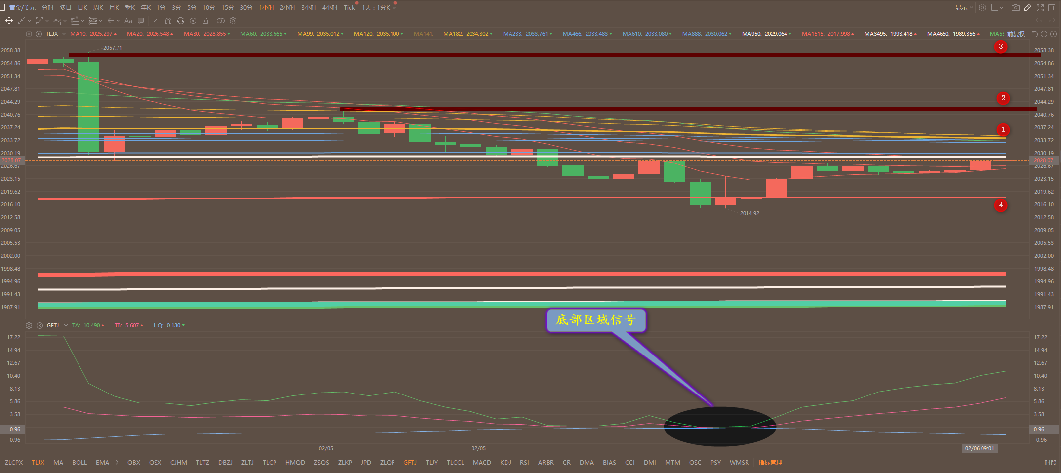 通过对黄金小时图解析得知,昨日行情先跌后涨如期到达下方2015一线止跌反弹,我们从下方的附图可以清楚的看到昨日到达下方2015一线出现底部信号(中短长期筹码集中),目前已经接近上方2031一线的均线压力位,短期我们重点关注上方123号的压力即可,预计继续向上反弹的可能性比较大,但是也不排除先继续回落调整一下下方我们重点关注2016一线的支撑,短期在操作上我们继续高空低多思路,具体建议如下:
