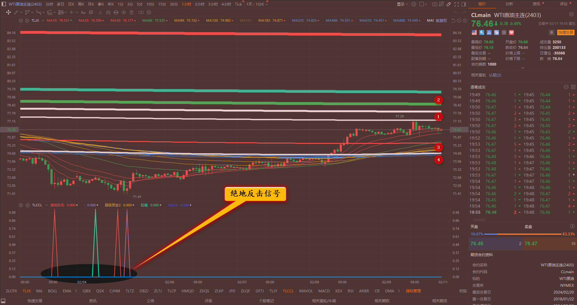 原油75.30和74.20分别做多,止损各70点,止盈各200点;
