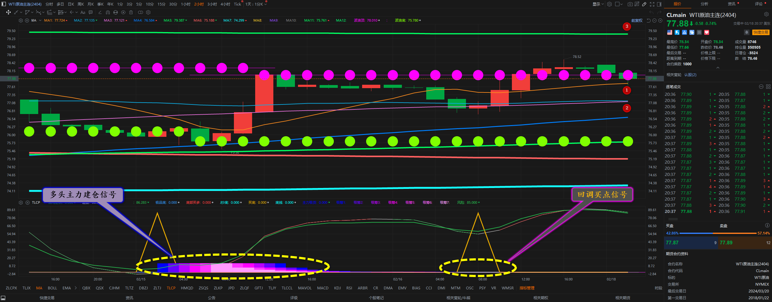 通过对原油2小时图解析得知,上一个交易日继续延续上涨走势,今日早盘冲高回落,我们从下方的附图可以清楚的看到,前期在底部区域出现多头主力建仓信号,行情一路上行突破,在上一个交易日回调的底部区域出现了回调买入信号上一个晚间进一步拉升突破创新高,目前有所调整短期下方我们重点关注12号均线的支撑,上方我们重点关注3号均线的压制,短期在操作上我们继续重点逢低做多,具体建议如下: